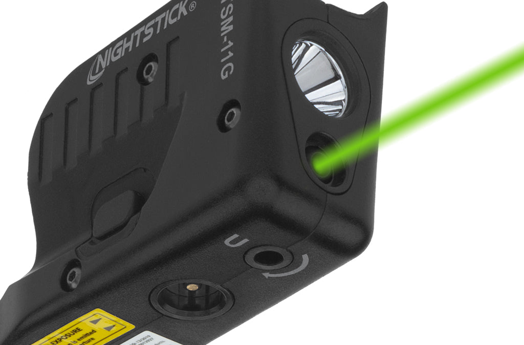 Unique to the Nightstick product line, each "G" Model of the TSM features a green aiming laser for easy daytime visibility. The laser can be used independently or in combination with the 150-lumen light with defined center spotlight and soft secondary halo. The TSM reflector is designed to optimize the output of the LED for threat identification at self-defense distances. All TSM-Series weapon lights are recoil tested for consistent reliability.