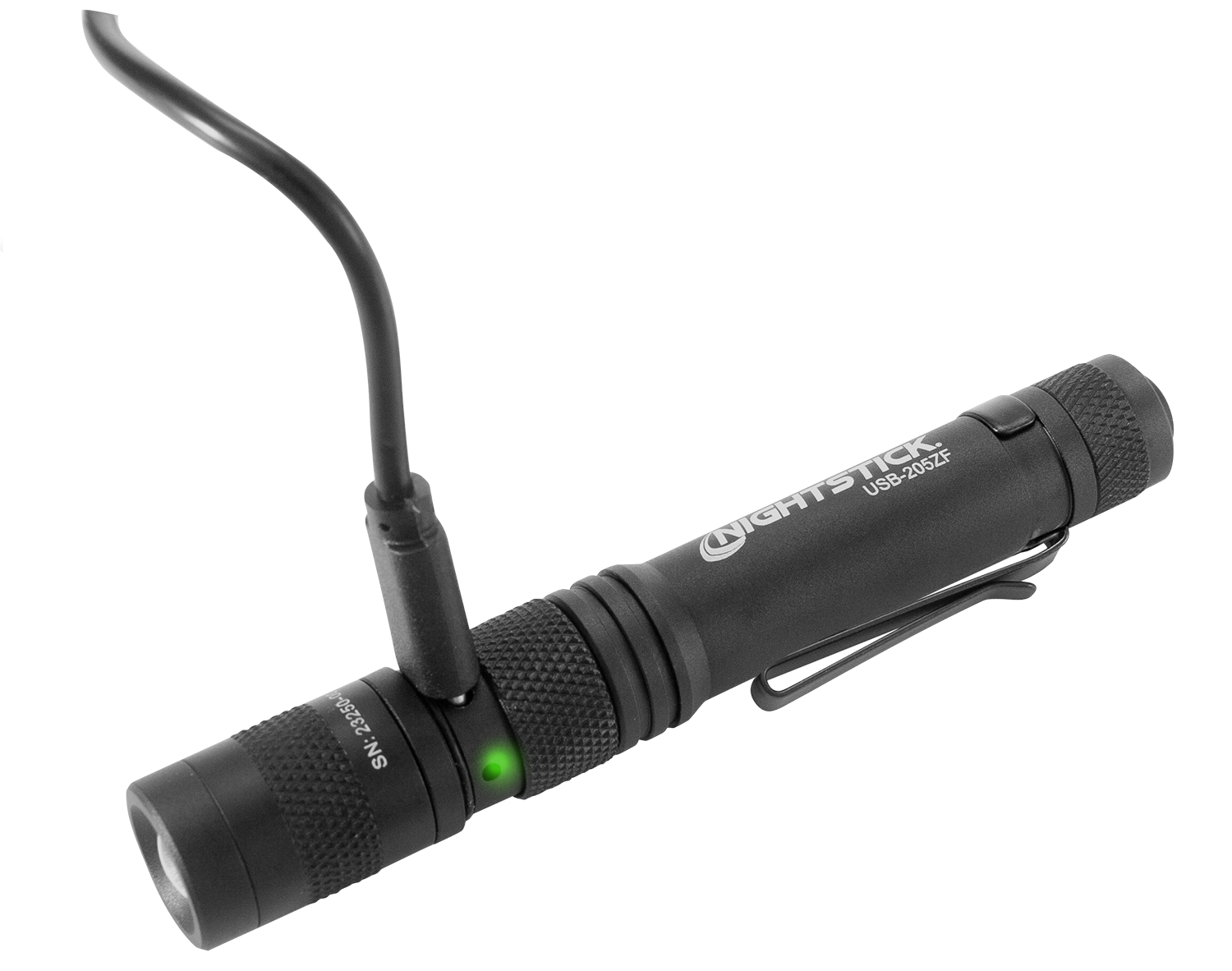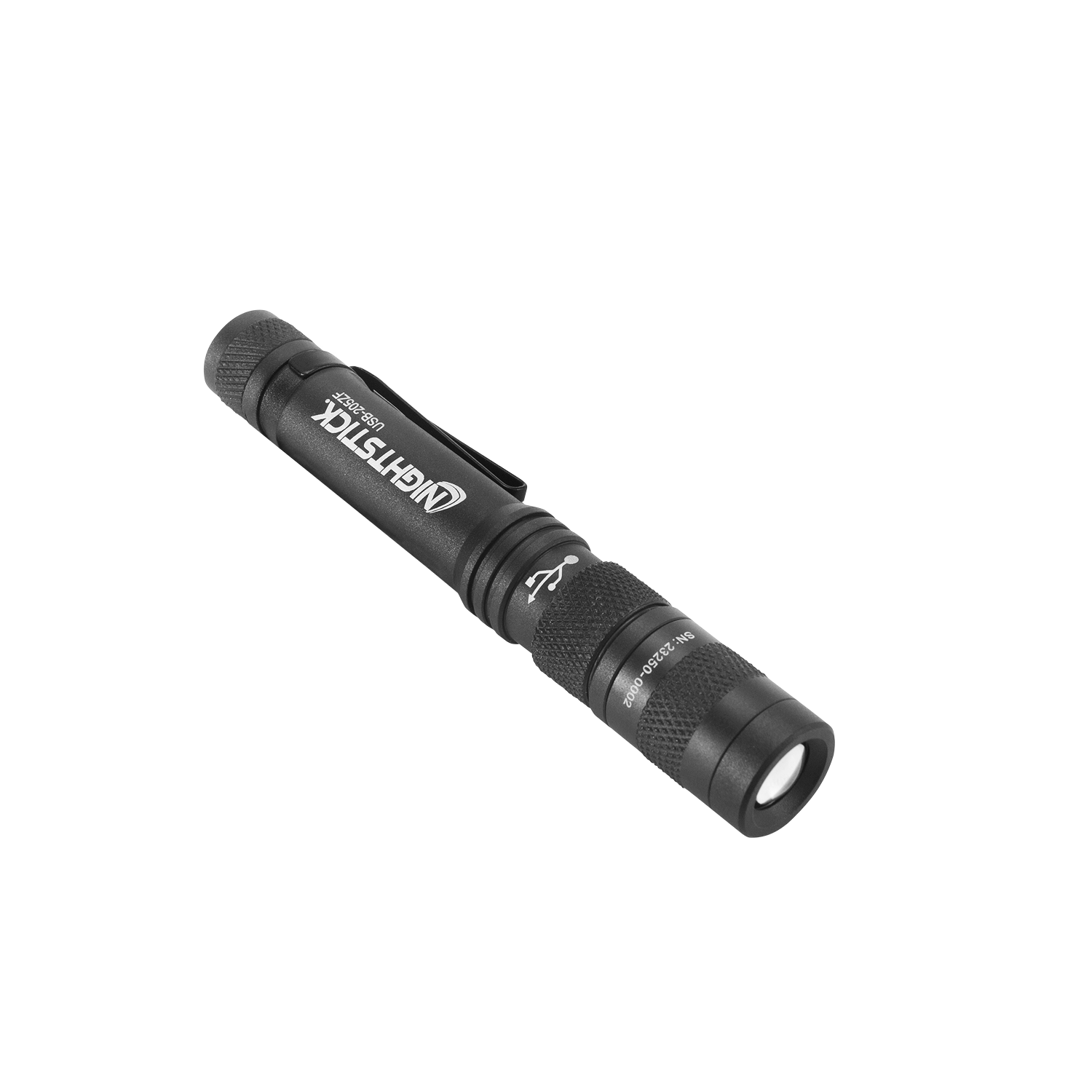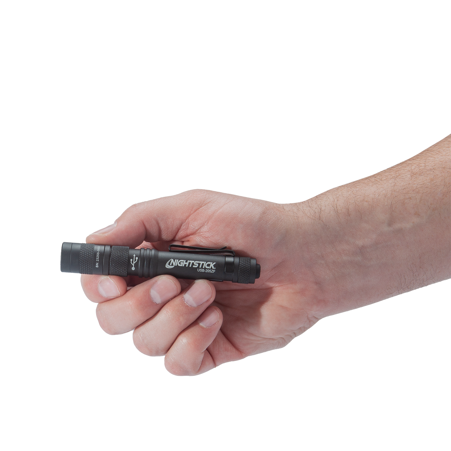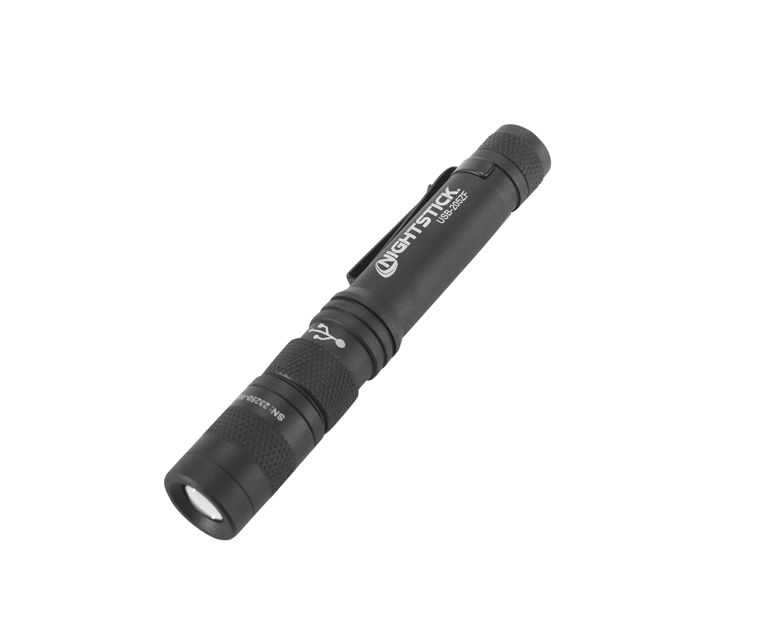 The USB-205ZF is a rechargeable pen light built for versatility. Its adjustable beam shifts from wide flood to tight spotlight, making it ideal for both up-close work and long-range inspection. With 150 lumens on high, a sliding sleeve protects the charging port, and the deep pocket clip keeps it secure and low profile. Housed in aircraft-grade aluminum with IP-54 water and dust resistance, it’s made to handle tough environments with targeted light where you need it.