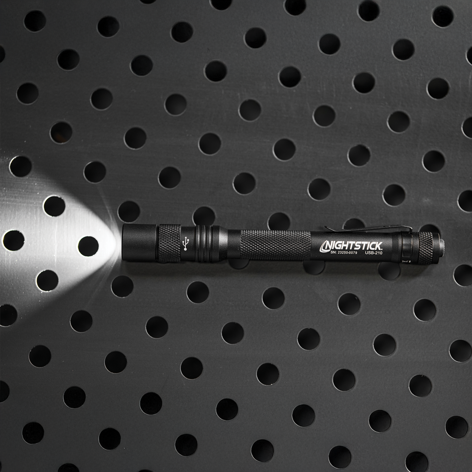 The USB-210 is a USB-C rechargeable penlight designed for bigger jobs in tight spaces. With up to 500 lumens and a beam reaching 109 meters, it delivers more power and distance in a slim 5.75-inch aluminum body. Its narrow profile fits into pockets and confined areas where bulkier lights can’t. A sliding sleeve protects the USB-C charge port, while the...Show More >
